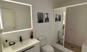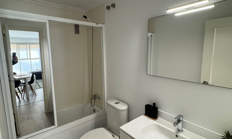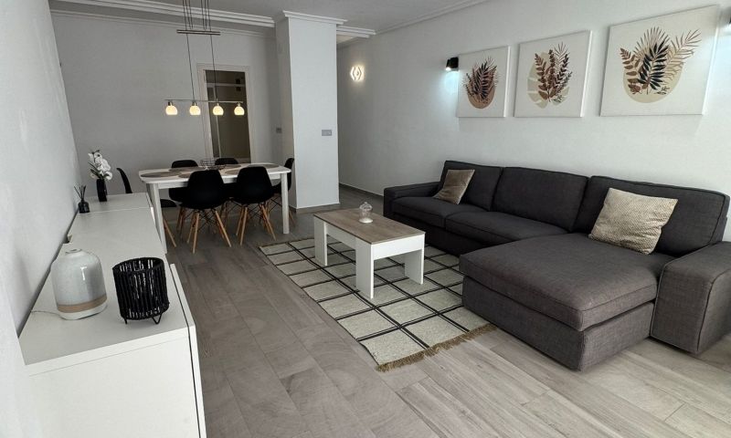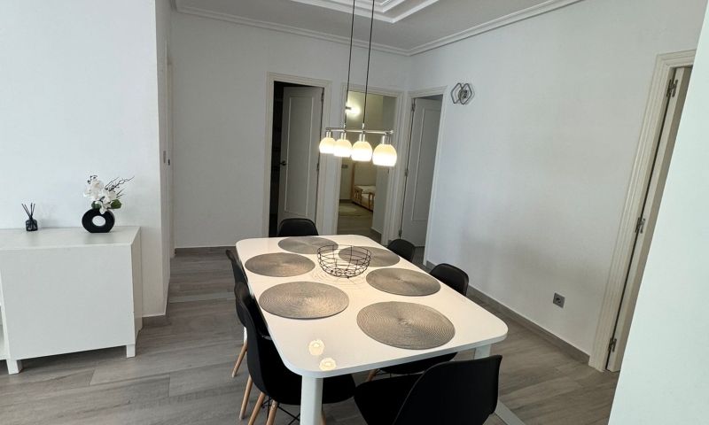 Die Wohnung verfügt über drei Schlafzimmer und zwei Badezimmer, die funktional aufgeteilt sind und Komfort und Privatsphäre gewährleisten. Sie ist komplett möbliert und ausgestattet und sofort bezugsfertig.