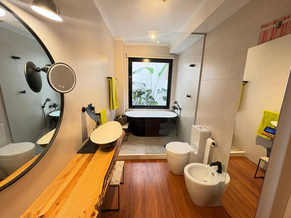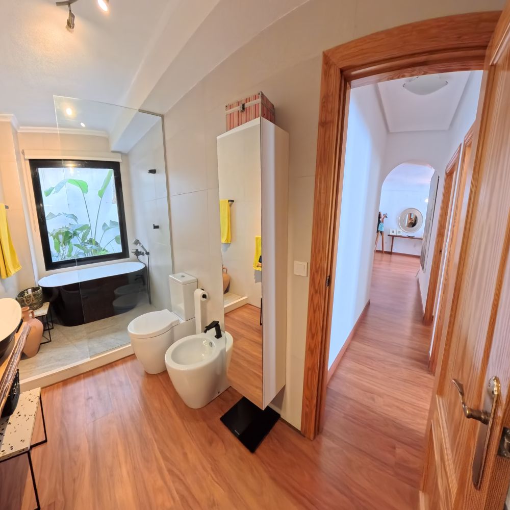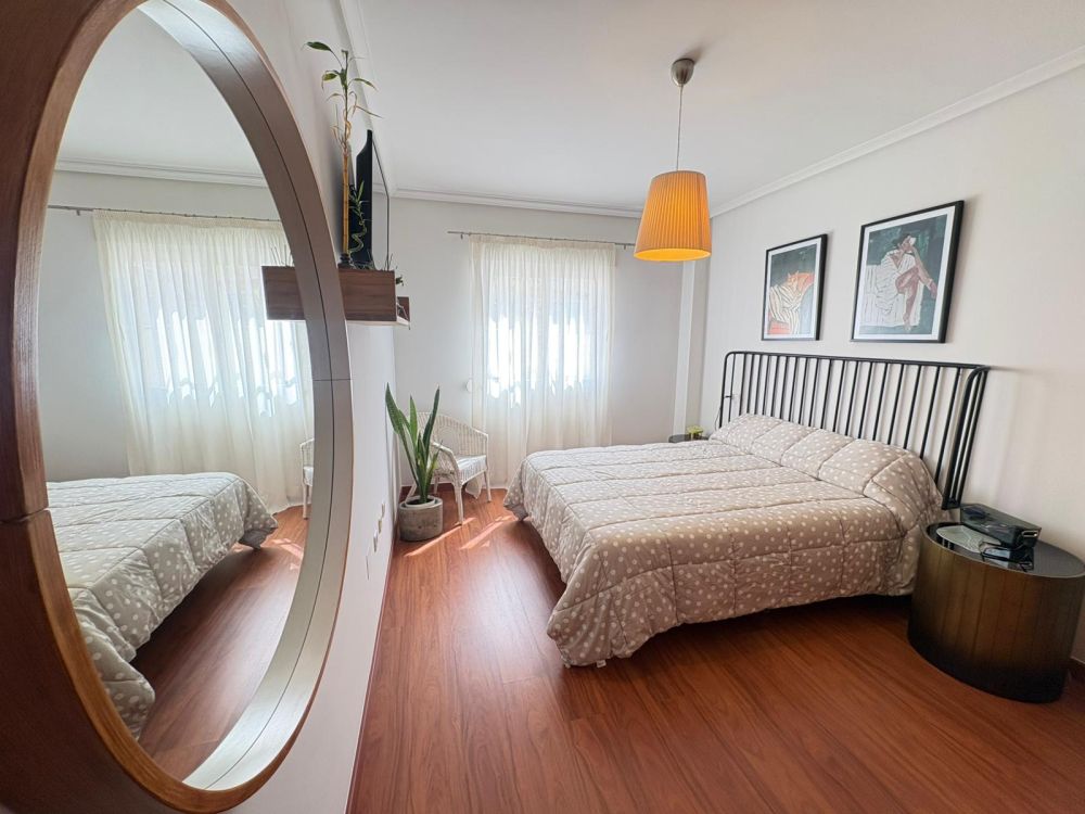 La vivienda dispone de 2 dormitorios muy amplios, Baños completo muy amplio con gran bañera y ducha, Aseo Toilette, Cocina independiente, Salón muy amplio con acceso a Terraza de 20 m2 frente a Piscina.
