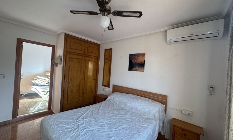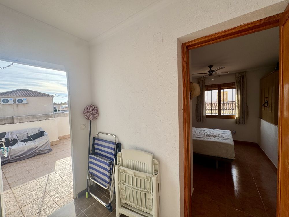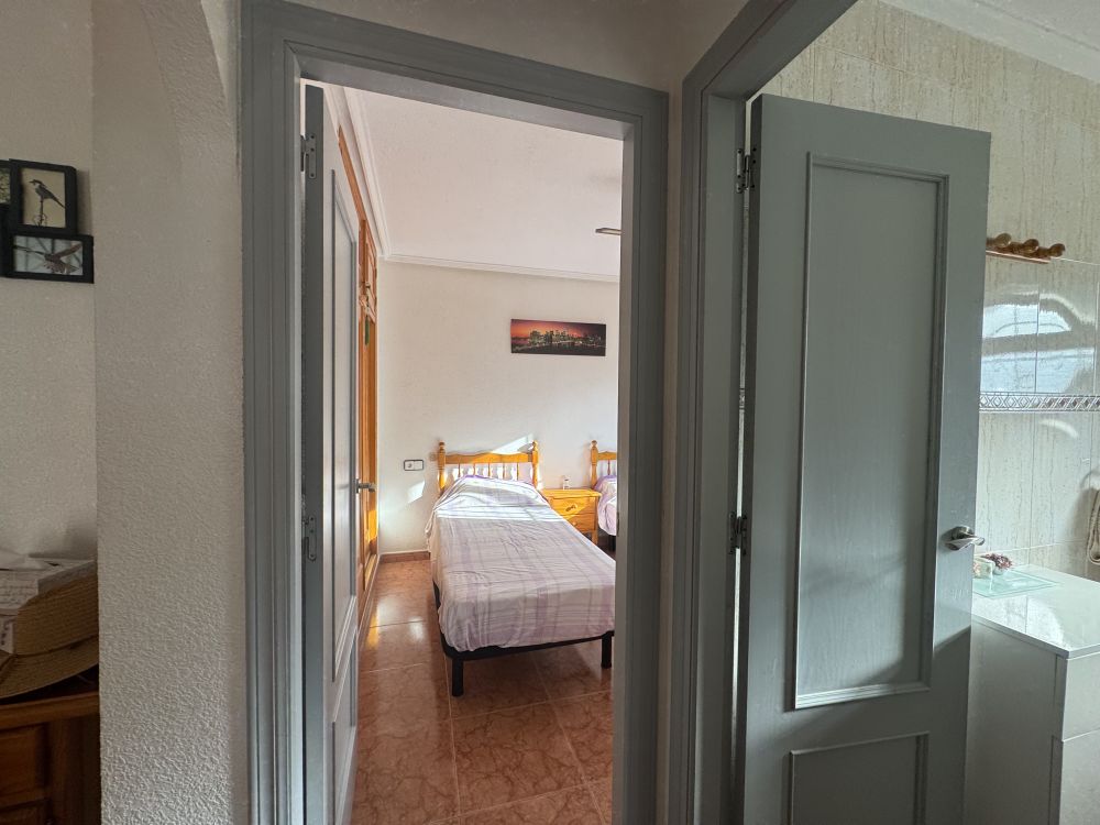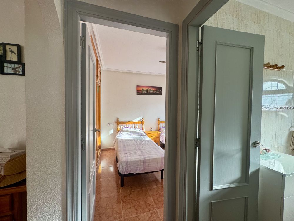En su interior, la propiedad ofrece 71 m² construidos, distribuidos en un luminoso salón-comedor, cocina independiente, dos dormitorios y un baño. En la planta superior, el torreón ha sido transformado en un dormitorio adicional con baño, ofreciendo un espacio extra muy versátil. Desde aquí se accede directamente a un solárium privado de 30 m², perfecto para relajarse, tomar el sol o crear una zona chill-out con vistas despejadas.